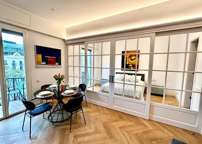 El aeropuerto Barcelona-El Prat está a 22 minutos en coche, y la parada de autobús Gran Via - Pau Claris, justo al lado del Apartamento Paseo De Gracia, Centro.